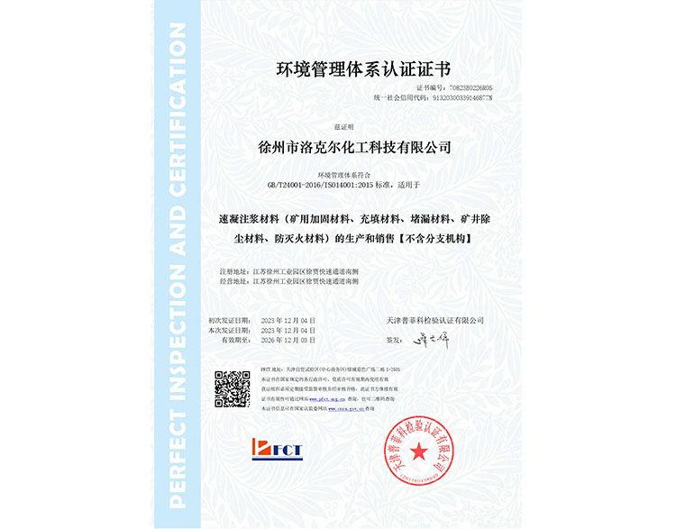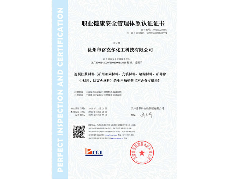 煤矿加固煤岩体用聚氨酯材料安标证书