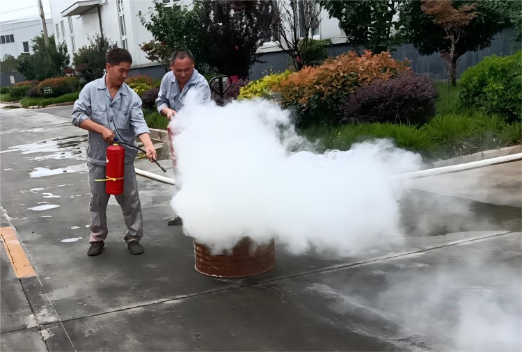 在模拟着火环节,员工发现火源后,快速反应,携带灭火器到达着火位置,迅速进行灭火,火被成功扑灭。在演练过程中,大家积极参与、密切配合,圆满完成了此次应急演练任务。